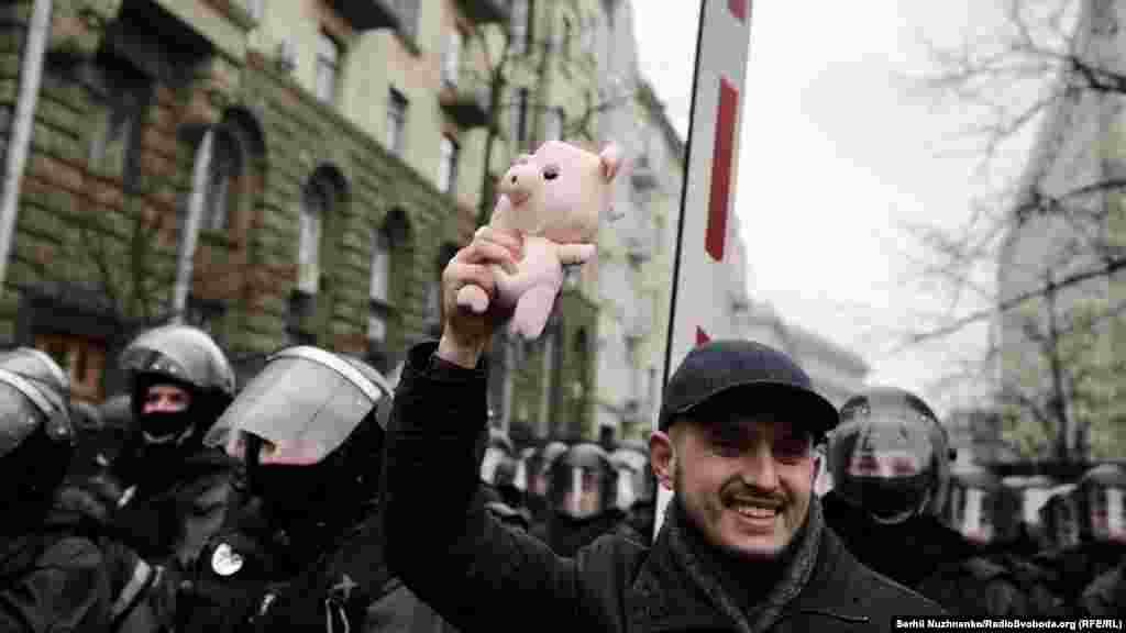 Праворадикали закидали іграшками свиней поліцію на Банковій – фото