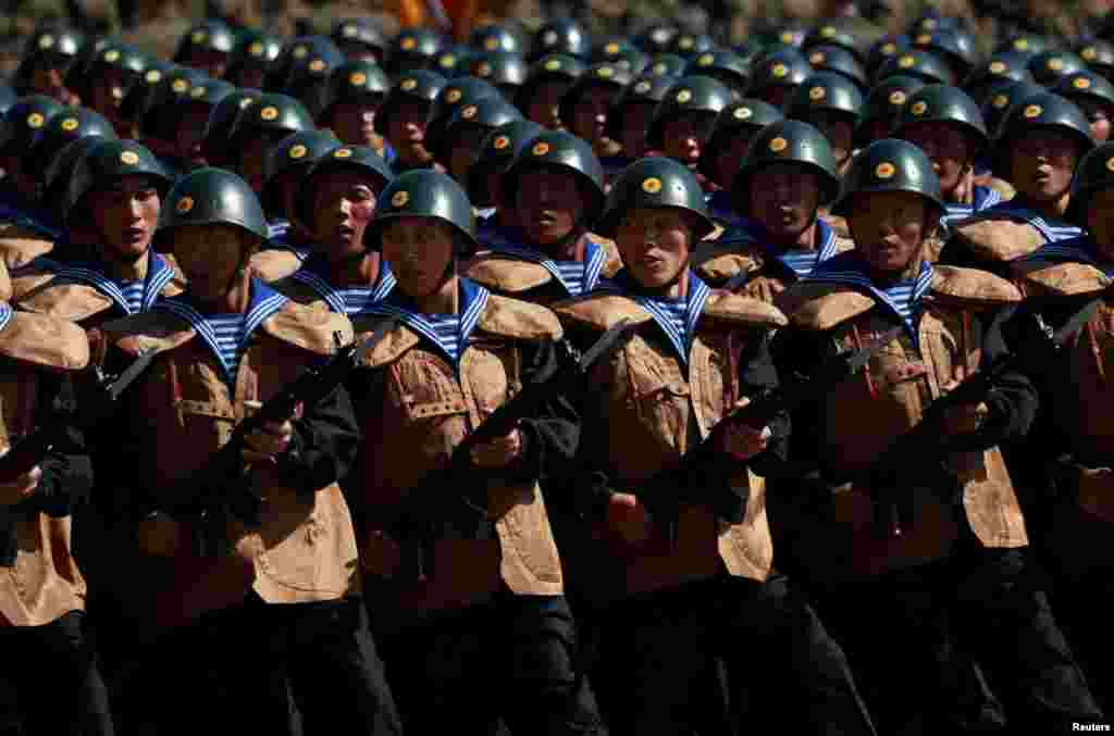 Солдати марширують під час параду до 70-ї річниці КНДР