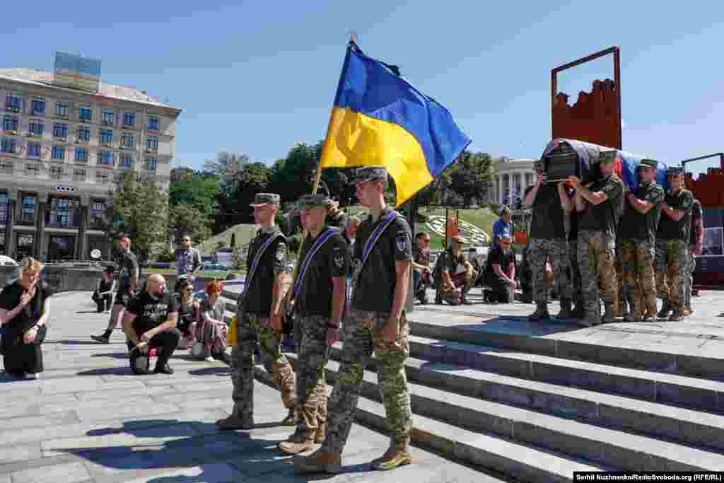 На майдані Незалежності в Києві попрощались із загиблим на фронті Пітером Фуше – волонтером, добровольцем і бойовим медиком із Великої Британії на псевдо Hasta La Vista.