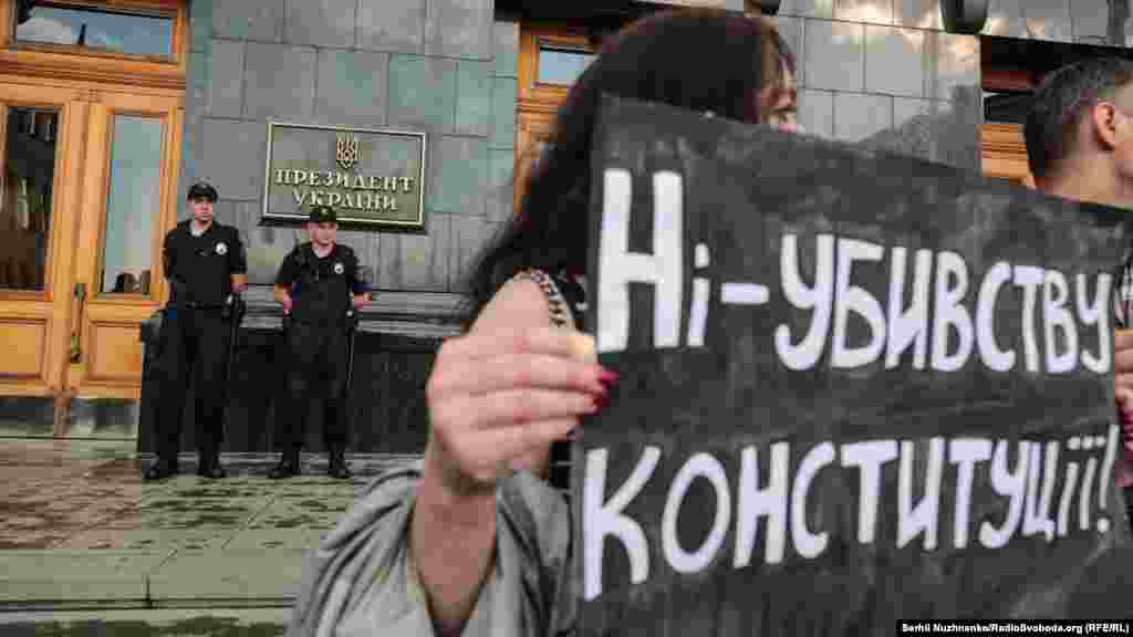 Біля будівлі офісу президента пройшла акція «Захисти Конституцію #CтопРеванш». Активісти напередодні дня Конституції вимагали звільнити голову офісу президента Андрія Богдана, речницю президента Юлію Мендель та притягнути до відповідальності Андрія Портнова. Учасники акції принесли на Банкову труну як символ «поховання Конституції».