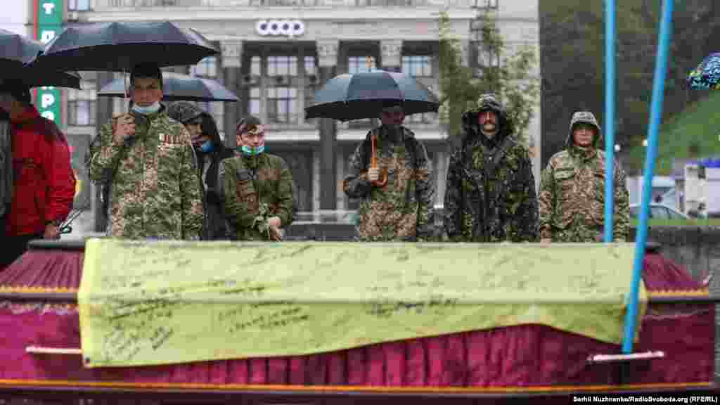 У Києві, на майдані Незалежності, попрощалися із військовим Миколою Микитенком, який підпалив себе на знак протесту. Попри погодні умови, попрощатися із ветераном бойових дій на Донбасі прийшло кілька десятків людей. Прощалися із чоловіком на тому ж місці, де він вчинив акт самоспалення.