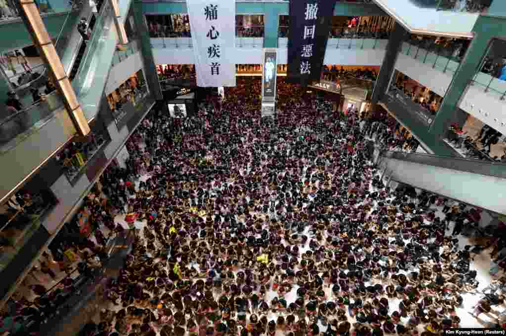 На банері написано: «Законопроект проти екстрадиції в Китай»