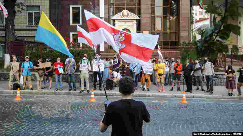 23 червня біля посольства Білорусі в Києві кілька десятків українців та білорусів, які живуть в Україні, мітингували проти політичних репресій і переслідувань у Білорусі й вимагали підтримати право білорусів на демократичні вибори.