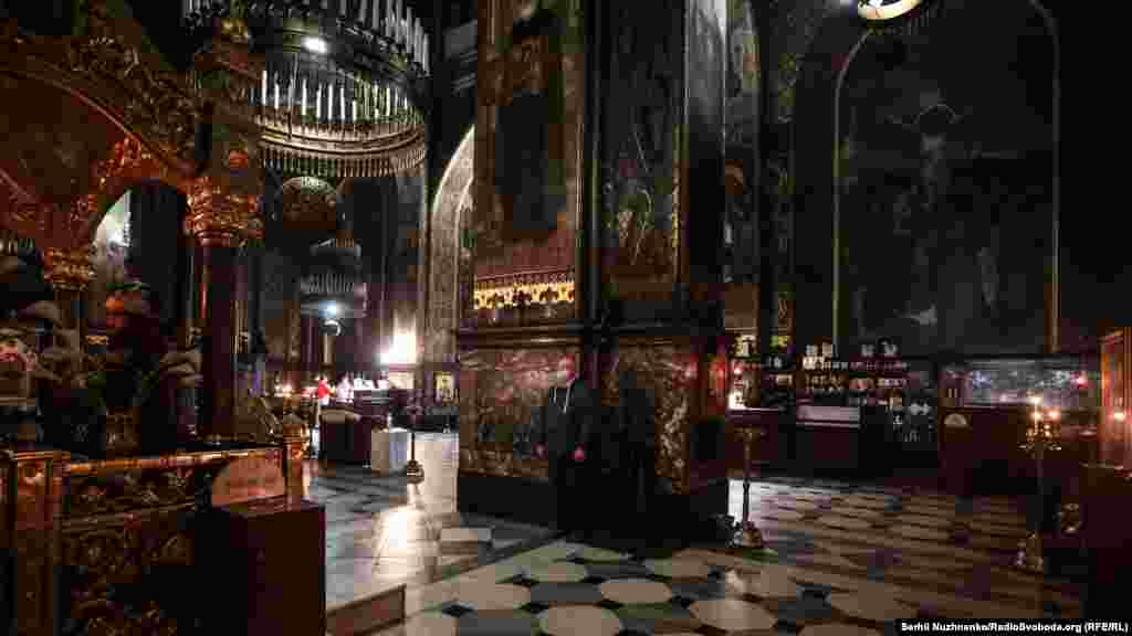 В храмі не багатолюдно, проте кілька вірян все ж прийшли на службу до храму