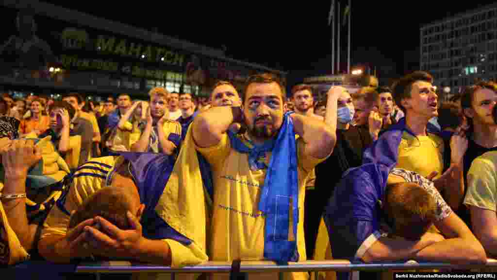 Збірна України з футболу на чвертьфінальній стадії припинила участь у чемпіонаті Європи. З рахунком 0:4 українці поступили збірній Англії. Близько 20 тисяч фанатів національної збірної України з футболу спостерігали за матчем у центрі столиці.