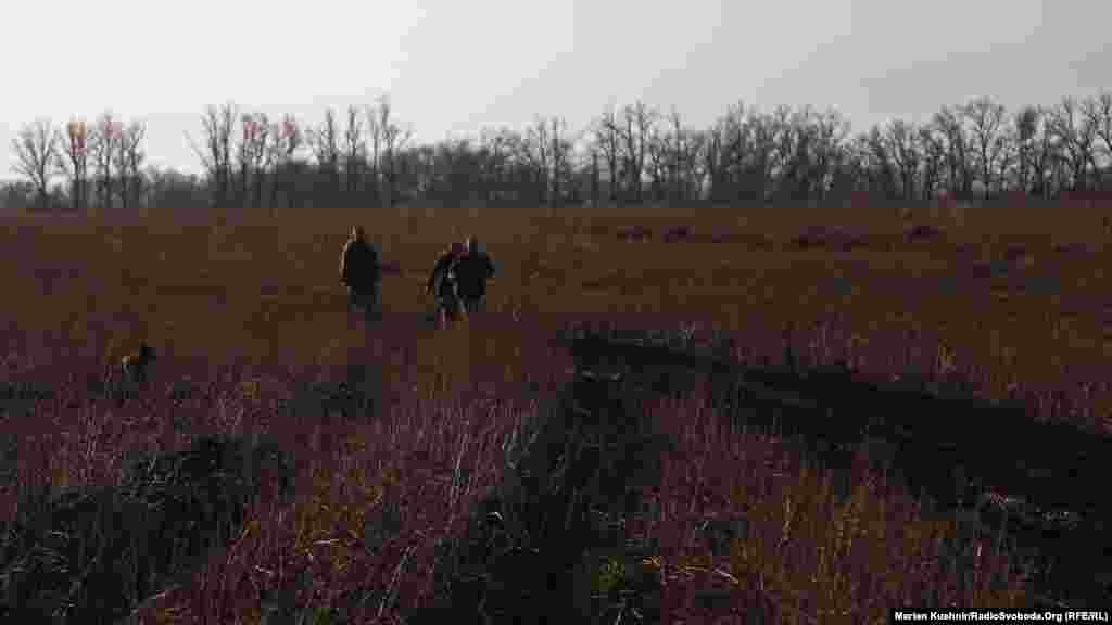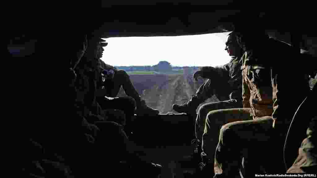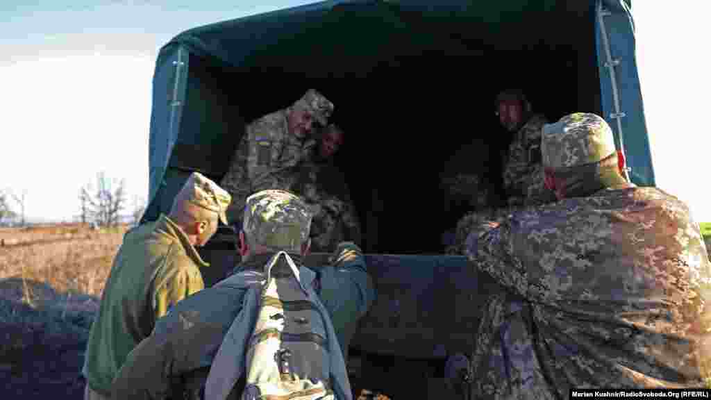 Вранці зі всіх позицій сходяться солдати до автомобілів і їдуть на дільницю.