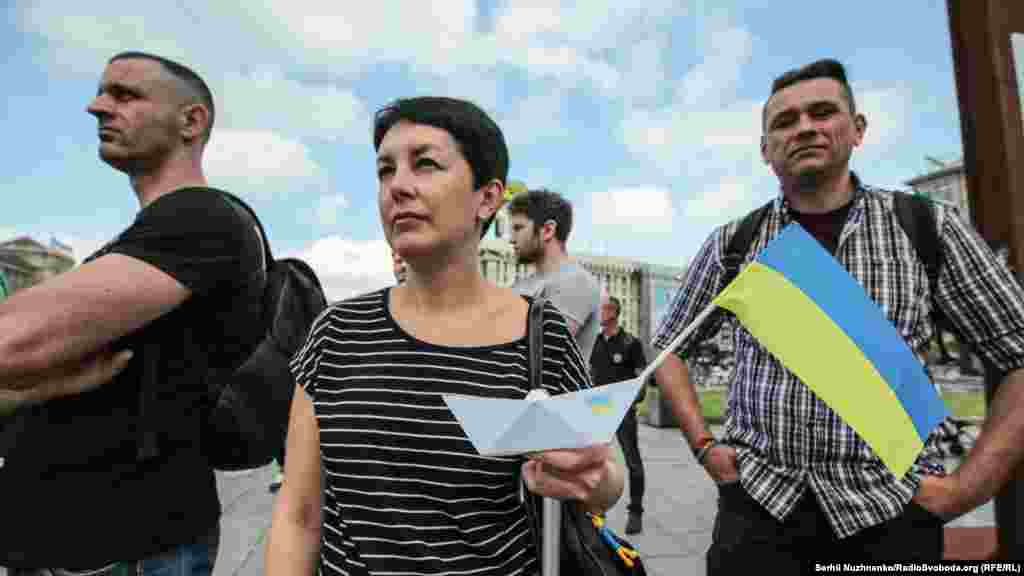 На Майдані Незалежності у Києві близько сотні людей вийшли на акцію, аби підтримати 24 українських моряків, яких захопили росіяни біля Керченської протоки у листопаді 2018 року.