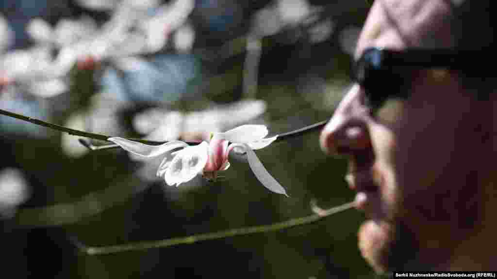 Але, на жаль, не всі відвідувачі турботливо ставляться до квітів. Час від часу на землі біля магнолій з’являються обірвані пелюстки квітів.