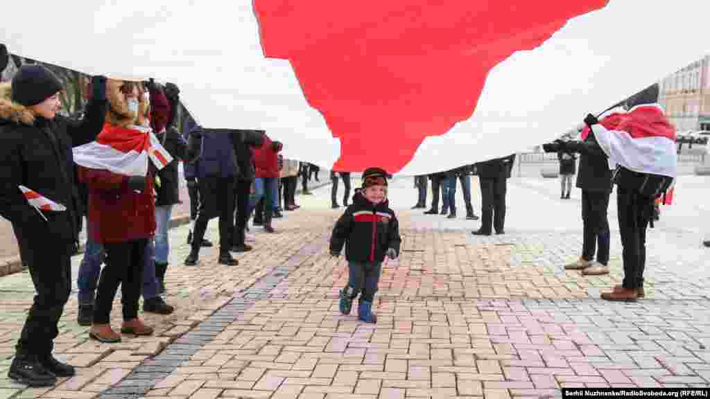 До акції доєдналися близько ста людей, кияни, громадяни Білорусі, які були змушені виїхати з країни