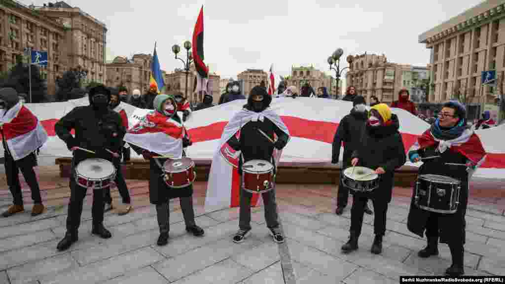 Учасники маршу під супровід барабанів співали пісні, що символізують незалежність Білорусі
