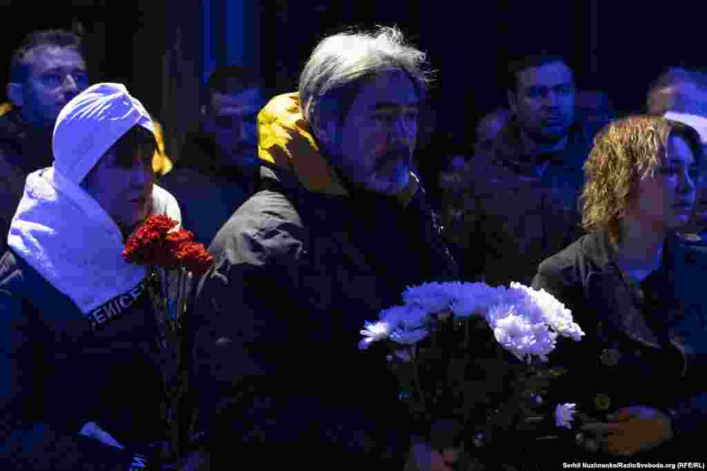 Український музикант, лідер гурту «Океан Ельзи» Святослав Вакарчук під час прощання в Театрі на Подолі