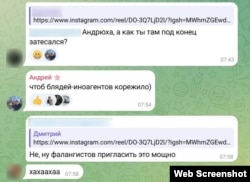 «Андрюх, а як ти там під кінець затесався?» – запитує один із них. «Щоб бл*дей-іноагентів корежило», – відповідає Соловйов.