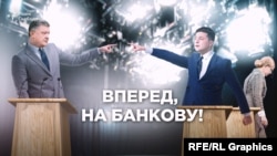У той же час, коли мали відбуватися теледебати між ключовими кандидатами в президенти на Суспільному, ще один претендент – Володимир Зеленський – проводив концерт у місті Бровари під Києвом. Там, зокрема, і лунали жарти про олігархів та опонентів в політичних перегонах.