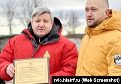 Від імені Мединського подяку приймали його заступник у РВІТ Микола Овсієнко та керівник всіх представництв організації на окупованих частинах сходу та півдня України – Вадим Лобін.