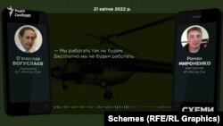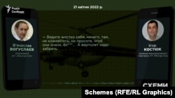 У розпорядженні «Схем» є лист, підписаний Богуслаєвим. У травні минулого року він скаржився міністру оборони Олексію Резнікову на примусове вилучення розвідниками декількох гелікоптерів. І стверджував, що використовувати їх не можна. Ризиковано для життя. Один із гелікоптерів, про які йшлося в листі за особистим підписом Богуслаєва – Мі-24.
