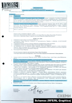 І журналістам вдалося отримати документ, який вказує, що у 2014 році, після окупації Криму та незаконного референдуму, Наум Баруля та його донька, майбутня нардепка Ірина Борзова, таки брали участь у перереєстрації компанії «Профіль-Н» за російськими законами.