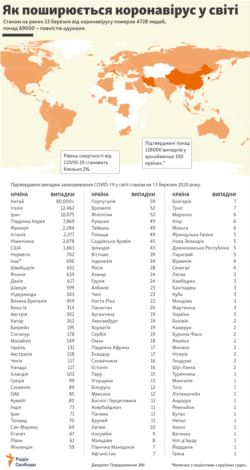 Як поширюється коронавірус у світі (станом на 13 березня 2020 року) – інфографіка