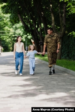«Наша донька Марія, їй сім років, реагує так – каже: «Мамо, а що, вони протезів ніколи не бачили? Ну і що, що тато на протезах?». Ми їй купили ляльку – Кен на протезі, вона показувала на дитячому майданчику, казала дітям: «У мого татка є два протези», – розповідає Анна.