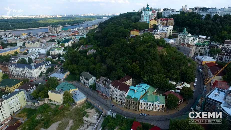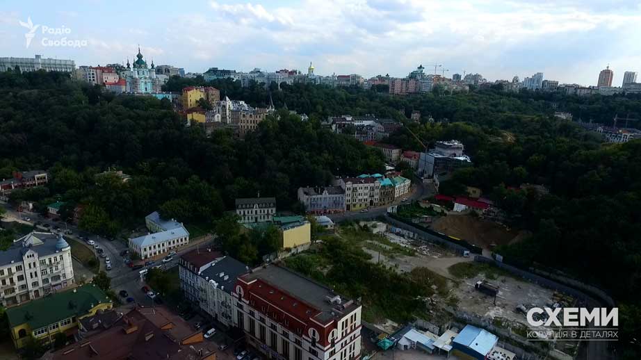 Київрада часів мера Олександра Омельченка у 2003 році віддала під приватизацію цю ділянку Ользі Калетник (сестрі Оксани Калетник) із формулюванням «для будівництва і обслуговування жилих будинків, господарських будівель і споруд». Пізніше цю ділянку Калетник офіційно продала ТОВ «Еф Ай Ем Елітстрой» – товариству, бенефіціарами якого є екс-депутатка від компартії, мільйонерка Оксана Калетник та один із найбагатших людей України (за рейтингами кількох видань) Вадим Єрмолаєв.