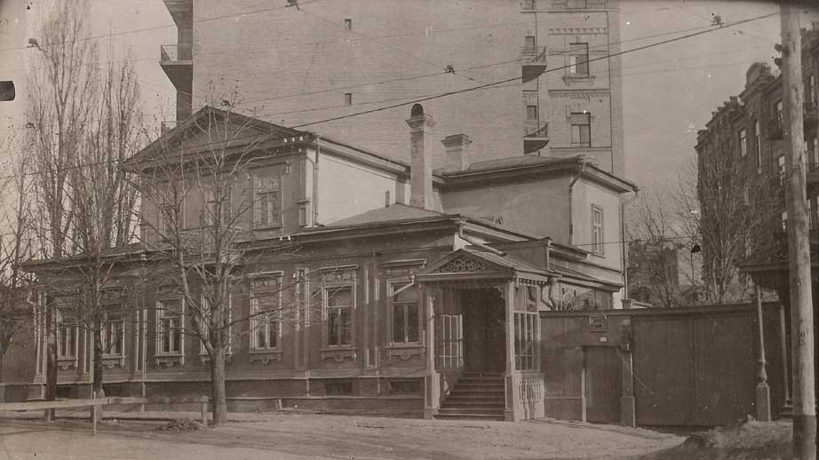 «Садиба №9 у 1860 роках належала Генюкам – родині васильківських міщан, які там влаштували публічний дім. У 1880-ті роки дім був власністю родини Тверитинових. Георгій Дмитрович Тверитинов збудував будинок, скоріше за все, за проектом архітектора Йосипа Зецкера. Це був прибутковий дім, де жили власники, а разом з ними – ремісники, чиновники, які у них винаймали кімнати та квартири. У післявоєнні часи там були комунальні квартири».