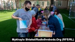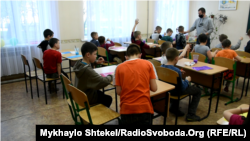 Учащиеся начальных классов старательно вырисовывают ангелочков вслед за киевским волонтером Евгением Веселовым. Он проводит такие мастер-классы во всех школах и интернатах, куда приезжают волонтеры.