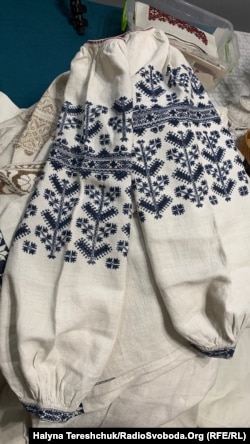 ‒ У мене є, наприклад, весільна сорочка з Лубенщини, там 17 швів. Є малесенька дитяча з села Русів, села Василя Стефаника, це Покуття, 14 швів. Тут є хрестик, стебнівка або штапівка, рахункова гладь, маскувальні шви, з'єднувальні, краєві, вишивка по брижах, низинка, верхоплут закрутка. Тобто дуже цікаво, дуже красиво. Стебловий шов. Це бавовняне полотно, яке ткане в домашніх умовах. Досить дрібна структура. Тут добряче мама працювала для своєї донечки. Це розвінчує міф про те, що дітям нічого не вишивали, що їм вишивали щось швиденько, простенько, бо вони швидко з того виростають, бо вони це бруднять, деруть і так далі.