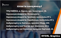 Міністерство охорони здоров’я України закликає кримчан вакцинуватися на материку. Наприклад, на Херсонщині. Там відкриті сім пунктів вакцинації.